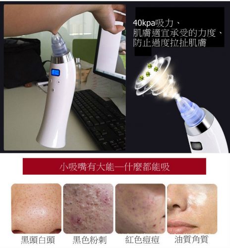 40kpa吸力,肌膚最適宜承受的力度,可用於清潔黑頭粉刺、拉提肌膚,打造完美肌膚